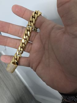 Miami Cuban Link Paved Lock Stainless Gold Bonded $50Pembroke Pines, FL