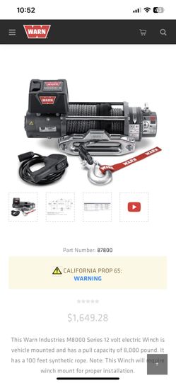 Warn M8 Synthetic Rope Winch$1,000Bakersfield, CA