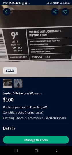 Jordan 5 Retro Low Womens $120Puyallup, WA