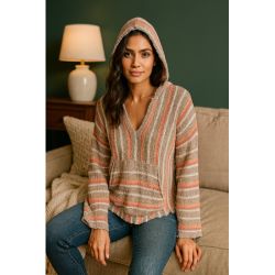 Rip Curl Women Striped Knit Hoodie Pullover Kangaroo Pocket Boho Cottagecore M$34Las Vegas, NV