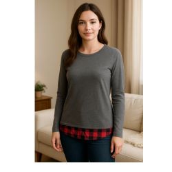 Faded Glory Women’s Gray Long Sleeve Top Tee with Plaid Hem Layered Look Size L$13Las Vegas, NV