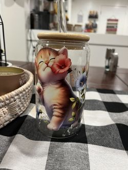 Cute Cat Floral Glass Cup With Bamboo Lid And Straw$8Modesto, CA