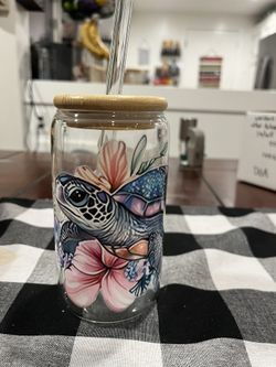 Sea Turtle Flower Glass Cup with Bamboo Lid And Straw$8Modesto, CA