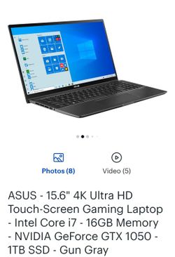New Laptop ASUS - 15.6" 4K Ultra HD Touch-Screen Gaming Laptop - Intel Core i7 - 16GB Memory - NVIDIA GeForce GTX 1050 - 1TB SSD - Gun Gray$1,370Boynton Beach, FL