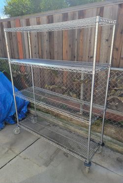 mobile chrome wire shelving unit, $110Oakley, California