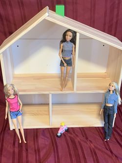 Toy wooden house and 3 Barbie dolls$25Woodburn, OR