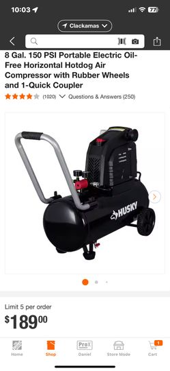Husky 8 Gallon Air Compressor 8 Gal. 150 PSI Portable Electric Oil-Free Horizontal Hotdog Air Compressor with$95Portland, OR