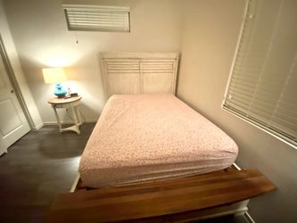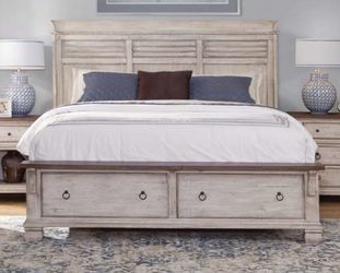 Farmhouse style solid wood queen-size bed with storage drawers. $900Gilbert, AZ