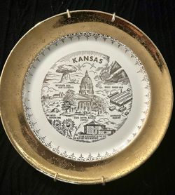 Kansas State Crest O Gold Vintage Plate $16Wichita, KS