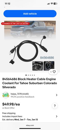 Block Heater Cable Engine Coolant Gmc Chevrolet Sierra Yukon Tahoe Silverado Suburban Brand NEW $45Miami, FL
