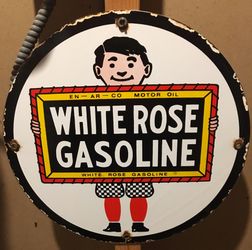 11 1/2” vintage steel White Rose gasoline pump plate, vintage petroleum signage$80Staten Island, NY