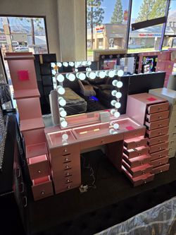 Brand New Vanity 13 Drawers Pink With LED Light Inside Drawers One Side Only & XL Hollywood Mirror W/ Bluetooth $899$899Bloomington, CA