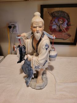 Vintage Asian Blue And White Ceramic Fisherman Statue$50Kent, WA