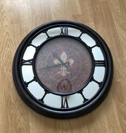 Round wall clock with Roman numerals and fleur-de-lis design. 22" Round, Use AA battery$30Charlotte, NC