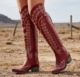 Red Color Over-The-Knee Cowgirl Boots Genuine Leather With Back Tie & Embroidery$50Monterey Park, CA