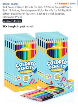 144 Count Colored Pencils for Kids, 12 Packs Colored Pencils Bulk 12 Colors, Pre-sharpened Color Pencils for Adults, Bulk School Supplies for Teachers$10Los Angeles, CA