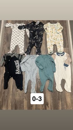 0-3 month baby boy sleepers bundle (7 pcs) – cute mix of neutral & Raiders designs, great condition!$15Visalia, CA