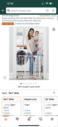 Regalo Easy Step 38.5-Inch Wide Walk Thru Baby Gate, Includes 6-Inch Extension Kit, Pressure Mount Kit, Wall Cups$25Oklahoma City, OK