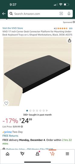 VIVO Clamp-on 17 inch Corner Desk Connector Platform for L-Shaped Workstations, Workspace Extender, Black, DESK-AC07C$15Village, OK