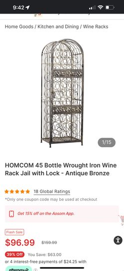 HOMCOM 45 Bottle Wrought Iron Wine Rack Jail with Lock - Antique Bronze$80Village, OK