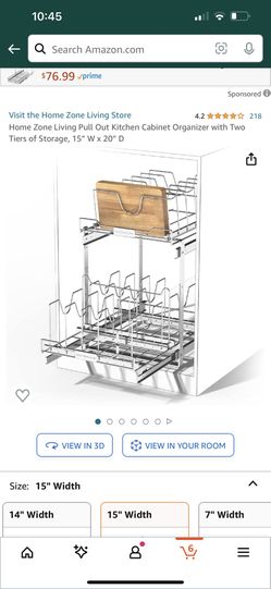 Home Zone Living Pull Out Kitchen Cabinet Organizer with Two Tiers of Storage, 15” W x 20” D$60Village, OK