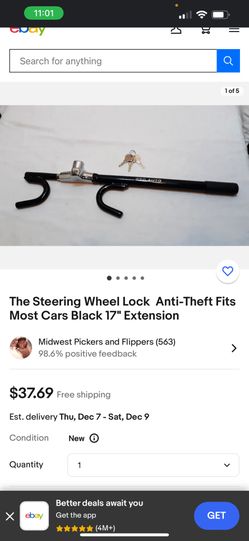 The Steering Wheel Lock Anti-Theft Fits Most Cars Black 17" Extension$25Village, OK