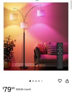 Floor Lamp with RGBW Light, 3-Light Arc Floor Lamps for Living Room, Modern Tall Standing Lamp with Adjustable Heads, Mid Century Corner Lamp with Rem$65Irwindale, CA