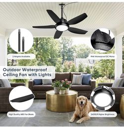 42 Inch Outdoor Ceiling Fan with Lights, IP65 Waterproof, APP & Remote Control, Dimmable 3CCT LED, 6-Speed Quiet DC Motor, Hanging Gazebo Fan Black Pl$75Irwindale, CA