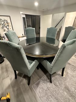 Custom 6ft Dining Table With 8 Custom Made Dining Armchairs With Glass Table Top$1,800Kenmore, WA
