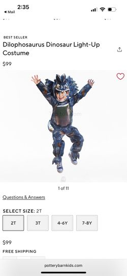 Pottery barn Dinosaur Costume $50Dallas, TX