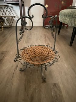 Woven Wicker Basket~Ornate Scrolled 4-Footed Base~Tall Handle~Grapes/Vines Box $30Fresno, CA