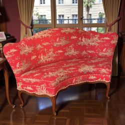 Neiman Marcus French Heritage Red Toile Louis XV Curved Loveseat Sofa 2 Available$2,800Beverly Hills, CA