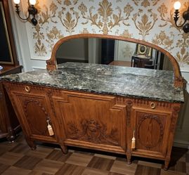 Antique French Louis Walnut Wood Marble Top Mirror Sideboard Cabinet$5,400Santa Monica, CA