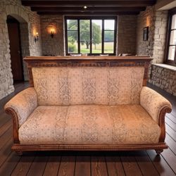 French 19th C Louis XVI Carved Walnut Custom Blush Nude Damask Settee Sofa$5,800Beverly Hills, CA