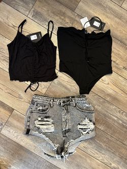 Fashion Nova3pc Denim Shorts, Crop Top, Bodysuit Size Medium $30Kannapolis, NC