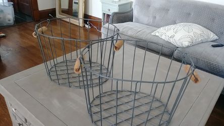 2 Rustic Wired Bins Baskets with Wood Handles$60Cleveland, OH