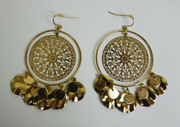 Vintage Boho Round Earrings Gold Tone Filigree Center Dangle Fish Hook Hippie Pre owned D - VZGALN$6Crown Point, IN