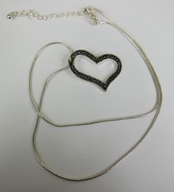 Silver Tone Pewter Necklace Chain Cute Heart Shaped Pendant Shiny Glass Black Pre owned D - F2Z1ZB$6Crown Point, IN