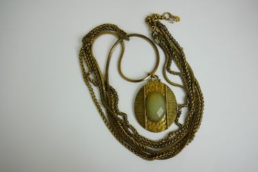 Vintage Lucky Brand Gold tone Necklace Wheat Chain Layered Pendant Oval White 3 layers pre owned D - K9TX0R$18Crown Point, IN