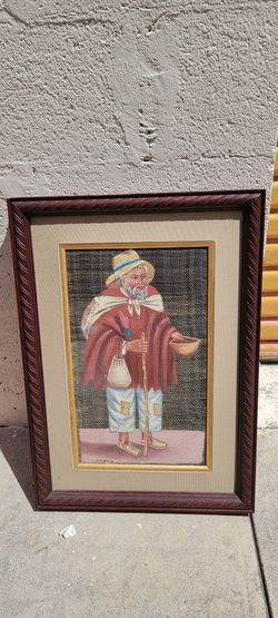 Vintage Folk Art Painting From Ecuador, Specifically One Created Using Horse Hair As A Canvas. $90Princeton, FL