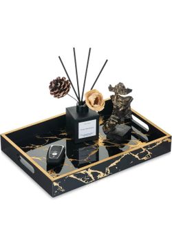 Black Marbling Decorative Tray with Handles, Morden Plastic Rectangular Serving Tray for Coffee Table Bathroom, Ottoman, Home Deco$25Whittier, CA