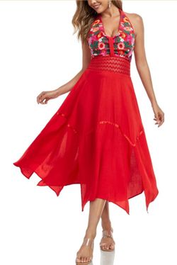 Women's Mexican Dress Flowy Dresses Embroidered Halter Off Shoulder Sexy Maxi Cocktail Dresses