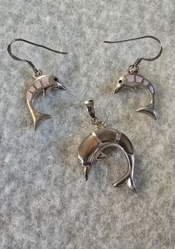 Sterling Silver 925 MOP Dolphin Pierced Earrings & Pendant$39Marysville, WA
