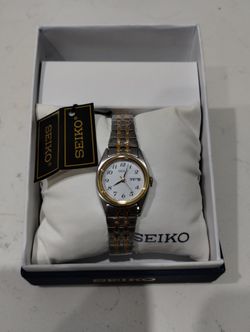 Seiko Women's White Dial Day Date Two Tone Watch 7n83-0011 Jubilee Bracelet