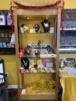 Tall Wooden Display With Glass Shelves $200Atlanta, GA
