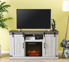 58 in. Saw Cut-Off White TV Stand for TVs up to 65 in. with Electric Fireplace$295Montclair, CA