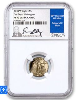 2018-W $5 1/10-oz Gold American Eagle NGC ms70First Day of Issue $510Summit, IL