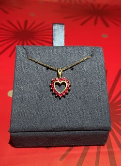 Jared Jewelers / Jewelry Sterling Silver 925 and Gold plated / Heart pendant charm with real rubies necklace$100Mesa, AZ