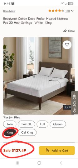 Beautyrest Cotton Deep Pocket Heated Mattress Pad-20 Heat Settings - White - King Size.$30Castro Valley, CA