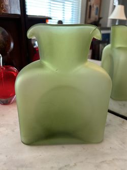 BLENKO Green Satin Frosted Art Glass Bottle Jug Vase Double Spouted$65Merritt Island, FL